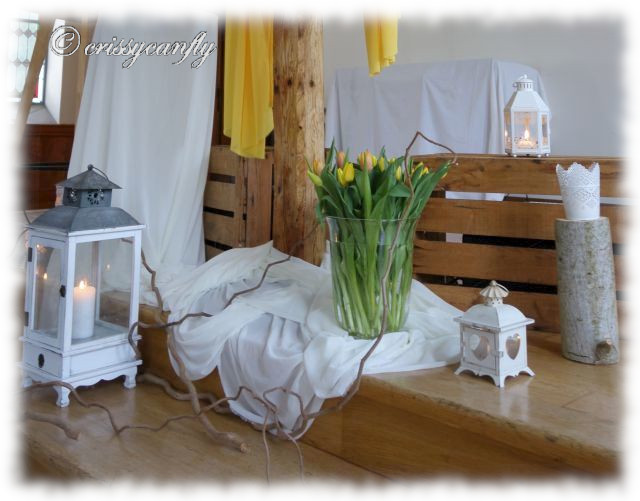 Bühnengestaltung für heute, Ostersonntag bei uns in der Kapelle